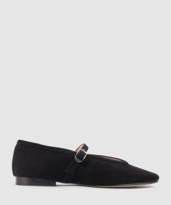 Edward Meller Women’s Flats Flavia Choked Up Ballet With Strap In Chocolate Suede | Chocsue