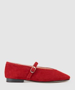 Edward Meller Women’s Flats Flavia Choked Up Ballet With Strap In Cherry Suede | Cherrysue