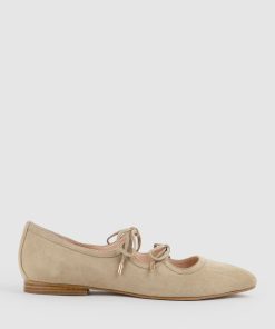 Edward Meller Women’s Flats Flavia Choked Up Ballet With Strap In Cashew Suede | Cashewsue