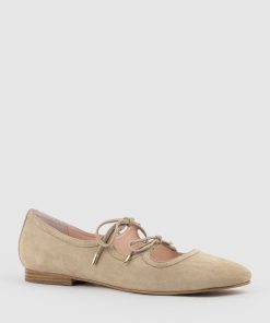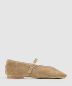 Edward Meller Women’s Flats Flavia Choked Up Ballet With Strap In Cashew Suede | Cashewsue