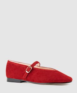Edward Meller Women’s Flats Flavia Choked Up Ballet With Strap In Cherry Suede | Cherrysue