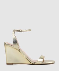 Edward Meller Women’s Shania90 Single Strap Sandal On Wedge In Pale Gold | Palegold