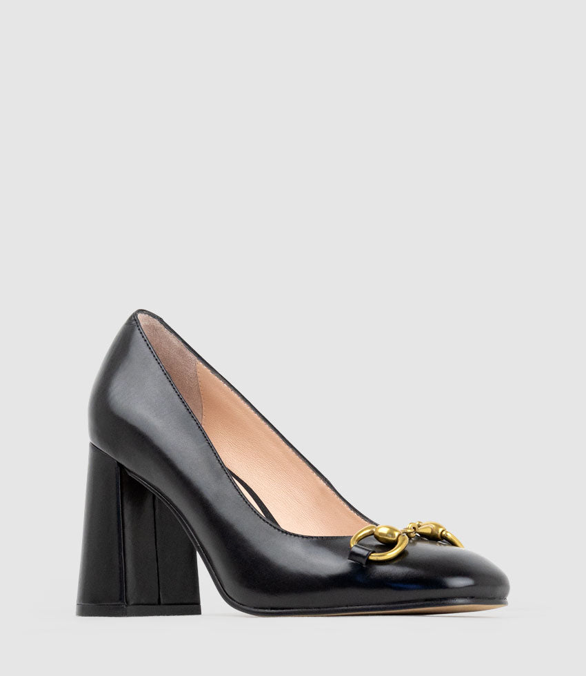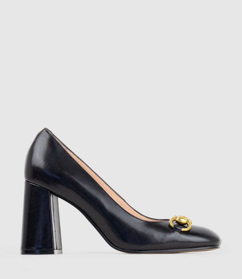 The BAILEY85 pump by Filippo Raphael for Edward Meller is a timeless addition to any wardrobe. Expertly crafted from smooth calf leather, this sophisticated style features squared-off toes adorned with elegant horse-bit hardware. Set on a sturdy 85 mm block heel, the BAILEY85 offers the perfect balance of height and comfort. Finished with cushioned insoles and full leather linings, they ensure breathability and effortless all-day wear.