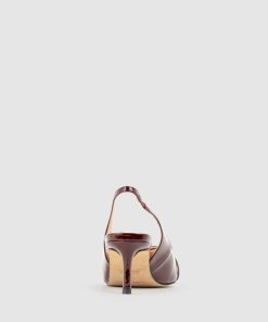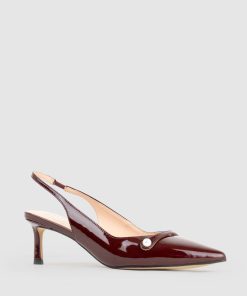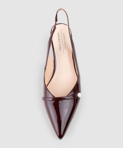 The DIVINE55 slingback pumps by Filippo Raphael for Edward Meller strike the perfect balance between elegance and sophistication. Crafted from glossy patent leather, they feature a pointed toe and a dainty strap embellished with a single faux pearl, adding a refined touch to the minimalist silhouette. Set on a slender kitten heel with cushioned leather insoles, they’re the ideal choice for effortlessly polished day-to-night dressing.