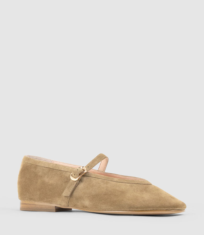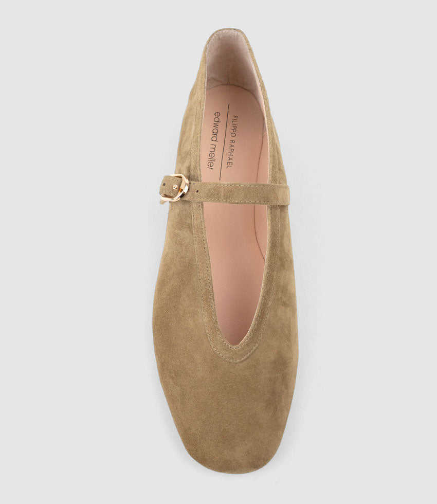 Edward Meller Women’s Flats Flavia Choked Up Ballet With Strap In Cashew Suede | Cashewsue