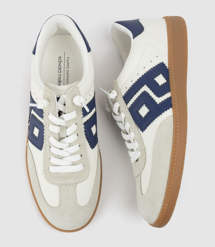 The JESTER sneaker by Filippo Raphael for Edward Meller blends sporty charm with refined craftsmanship. Crafted with a leather upper and fabric lining, it delivers a breathable and durable design. The removable leather-topped inner sole enhances comfort and versatility, making the JESTER an effortlessly stylish choice for everyday wear. Perfect for pairing with both casual and elevated looks.