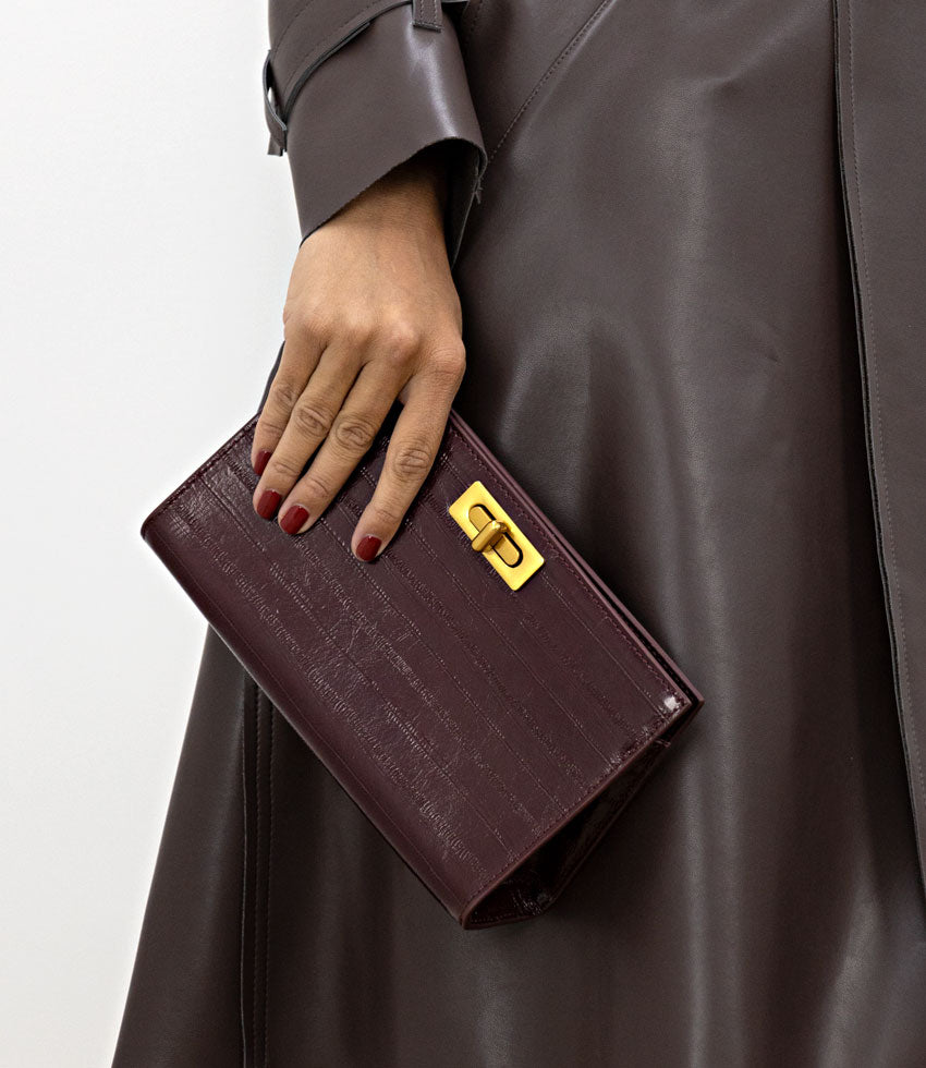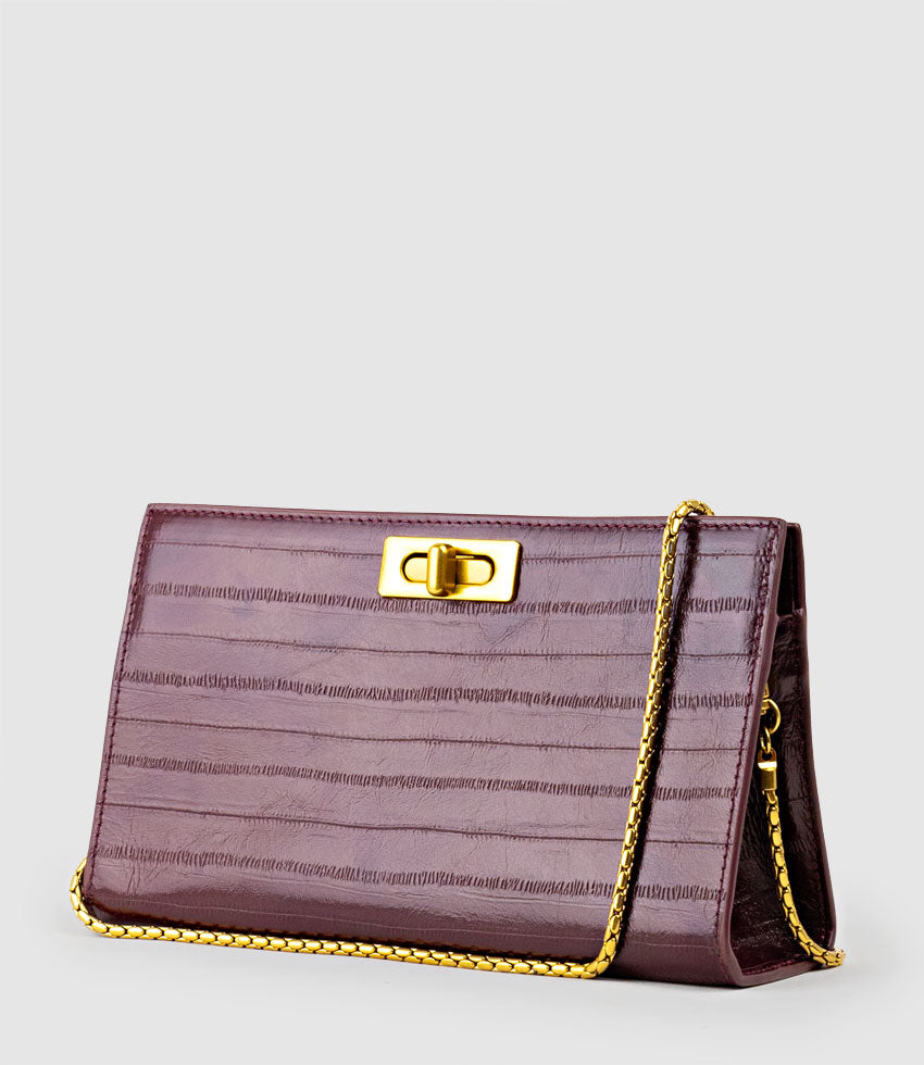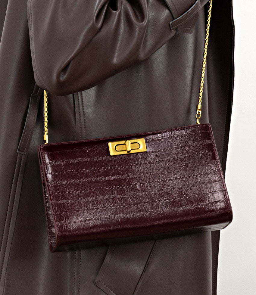 Edward Meller Women’s Nayla Bag With Twist Hardware In Black Cherry Eel Print | Blacherryeel