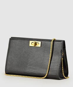 Edward Meller Women’s Nayla Bag With Twist Hardware In Black Tejus Lizard Print | Blacktejus