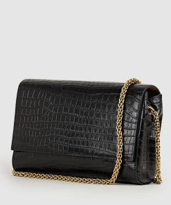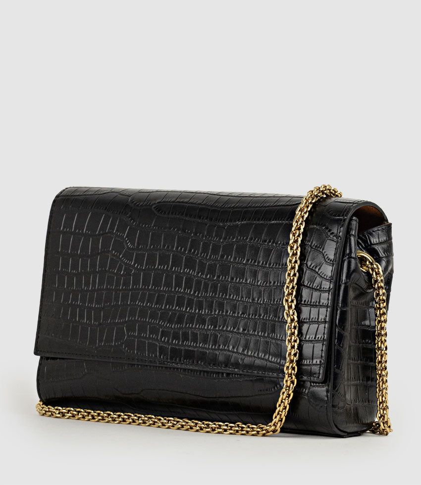 Edward Meller Women’s Niria Crossbody Bag In Black Croc | Blacroc
