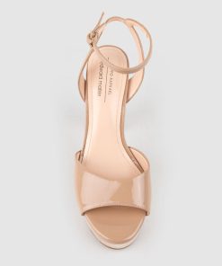 Edward Meller Women’s Regana125 Open Toe Platform Sandal In Nude Patent | Nudepat