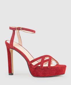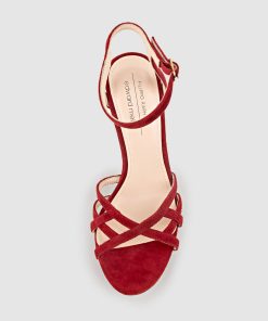 Edward Meller Women’s Sami110 Lattice Front Platform Sandal In Cherry Suede | Cherrysue