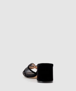 Edward Meller Women’s Sandals Iala55 Mesh Front Slide In Black Suede | Blasue
